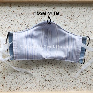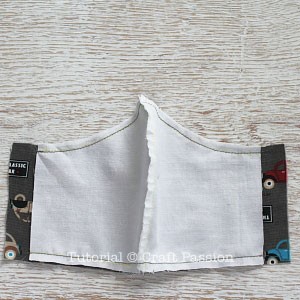 Vire a máscara para o lado direito. (virar do avesso para o direito) Passe a costura a ferro.