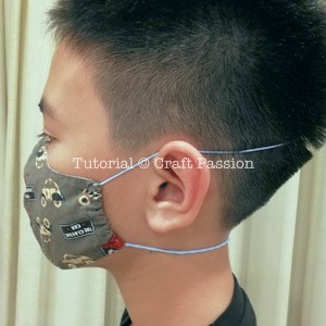 - Costure as orelhas da máscara facial. Insira o fio elástico na orelha da máscara.