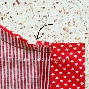 Corte a a margem de costura cerca de 1,25 cm. Isso permitirá que a borda bruta do tecido se estique sem puxar a costura quando você o virar para o lado direito. Repita isso na camada externa e na camada interna.