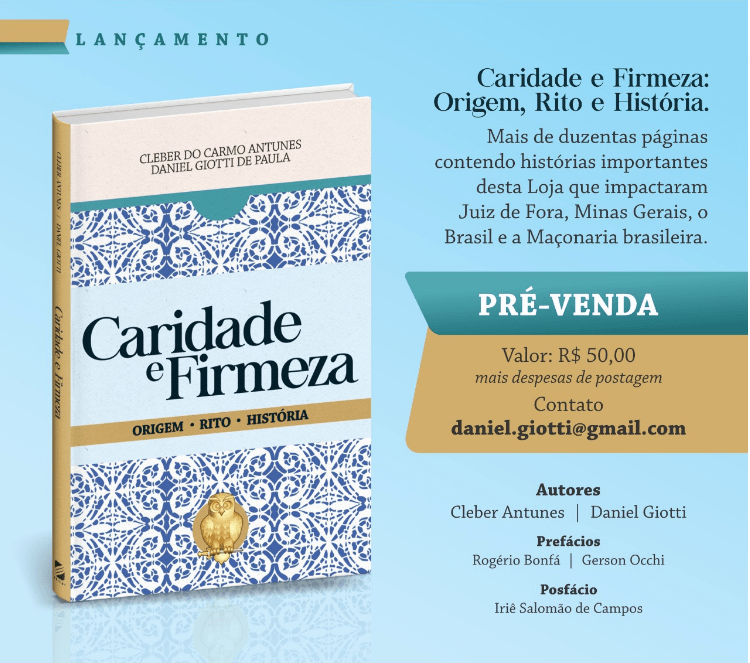 eis o livro sobre nossa querida Loja Caridade e Firmeza, contando seus 125 anos, jubileu secular de prata. A Loja foi pioneira na Maçonaria brasileira por vários motivos nas primeiras décadas do século XX. Ajudou na criação de instituições várias de Juiz de Fora. Também colaborou para a difusão do rito moderno, com Álvaro Palmeira nela fazendo várias palestras quando se discutiu a regularidade do mesmo. Não bastasse, a Loja teve uma participação vital nas eleições do GOB de 1946/1947, lançando Jurandyr Pires Ferreira, um relevante deputado federal e futuro presidente do IBGE ao Grão-Mestrado, que antes ainda tinha fundado a Esquerda Democrática com Hermes Lima e João Mangabeira. Figuras como Ithamar Rates Barroso, Álvaro Palmeira, Moacyr Arbex Dinamarco, Francisco Prado, Ariovaldo Vulcano, General Thomáz Cavalcanti e muitos outros próceres da Maçonaria brasileira participam desta história. Estamos fazendo uma pré-venda e a previsão é que quem adquirir na pré-venda ja o receba agora. A pré-venda nos ajuda a custear os cursos de produção. Veneráveis e Bibliotecários, tenham esse livro nas bibliotecas de suas Lojas.