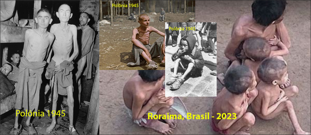 Então, revela-se que o que sempre acontecera com os outros, ou do outro lado do mundo está acontecendo também no Brasil, sob os nossos narizes, e imagens horríveis de corpos esqueléticos de populações autóctones, vítimas de violência e genocídio surgem em nossas telas. Em Roraima, os Yanomami são vítimas de genocídio. Centenas de crianças desnutridas morrem de fome abandonadas, vítimas de fome e doenças trazidas por criminosos, com a conivência de outros criminosos ocupando altos cargos no governo.