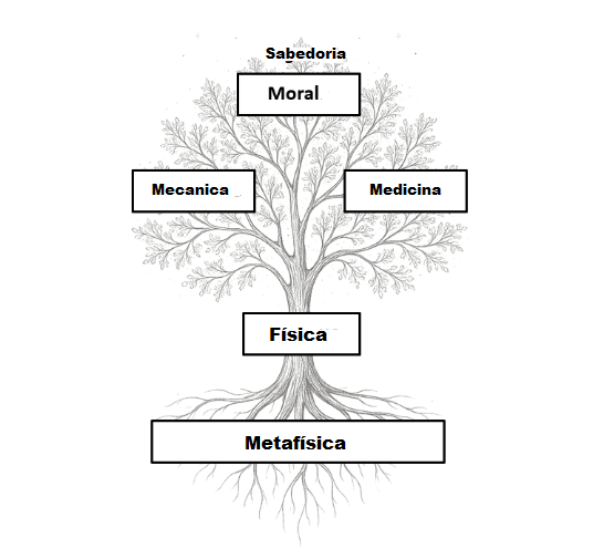 “Toda a filosofia é como uma árvore, cujas raízes são a metafísica, o tronco é a física, e os ramos que saem desse tronco são todas as outras ciências, que se resumem a três principais, a saber, medicina, mecânica e moral; Quero dizer a moralidade mais elevada e perfeita, que, pressupondo um conhecimento completo das outras ciências, é o último grau de sabedoria.” Descartes, Os Princípios da Filosofia, 1644