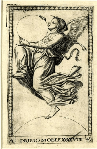 As Cartas dos Tarocchi são formadas por diversas imagens, sendo que as figuras que representam os planetas são as da última série. Por isso, essa Carta, a penúltima, é denominada de Primo Mobile, já que representa o cosmos após percorrido as sete esferas planetárias e as sete Musas, como simbolizado na gravura de Gaffurio. Ela é a penúltima Carta e está antes, apenas, da Carta da Causa Primeira, o que evidencia, assim, a importância da harmonia e da música das esferas.