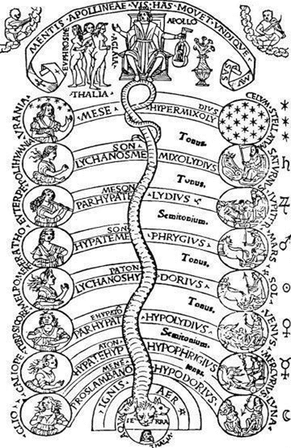 O Renascimento, ao postular a existência de uma harmonia entre as esferas dos planetas, e de uma melodia musical existente entre as esferas cósmicas, amparava-se numa antiga tradição que remontava os pitagóricos. De fato, na Renascença o pitagorismo, o neoplatonismo, o hermetismo e o orfismo são algumas escolas místicofilosóficas que foram redescobertas e valorizadas e que muito contribuíram para aguçar a ideia da existência de uma música celestial, cósmica, que refletia no mundo terreno.