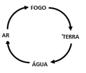 Para resumir o conjunto do processo alquímico, podemos dizer que a Obra começa com o elemento Terra que é reduzido a Água (Nigredo), então a Água é reduzida a Ar (Albedo), depois o Ar em Fogo (Rubedo), antes que o Fogo seja definitivamente fixado em Terra. Assim, fecha-se o círculo.