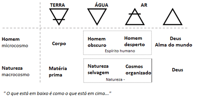 A natureza tríplice do homem corresponde à famosa tríade alquímica Enxofre, Mercúrio e Sal: