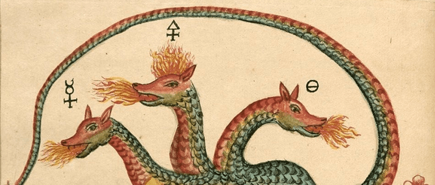 A serpente Ouroboros também pode ser comparada ao dragão, o “Basilisco Filosófico”. Segundo algumas interpretações, o dragão deve ser dominado, fixado, crucificado, porque se não for, ele é apenas destruição e caos.
