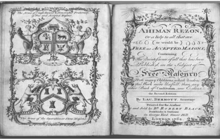 DERMOTT, L. Ahiman Rezon, ou ajuda a todos os que são (ou seriam) maçons livres e aceitos. 2ª edição. Londres: Impresso para o autor e vendido por Robert Black Encadernador e papelaria em George Yard, Tower Hill, 1764.
