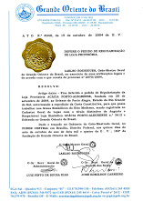 Recebido o Ato nº 4940, de 15 de outubro de 2004 da E.’. V.’., o Grão-Mestre Geral do Grande Oriente do Brasil, Ir.’. Laelso Rodrigues, ficando deferido o pedido de Regularização da Loja Provisória Acácia Porto-Alegrense, fundada em 27 de setembro de 2004, ao Oriente de Porto Alegre, Estado do Rio Grande do Sul, autorizando a expedição da Carta Constitutiva, para que possa trabalhar nos Graus Simbólicos do Rito Moderno, sendo registrada no Cadastro Geral de Lojas com o título distintivo de Augusta e Respeitável Loja Simbólica ACÁCIA PORTO-ALEGRENSE nº 3612 e federada ao Grande Oriente do Brasil.