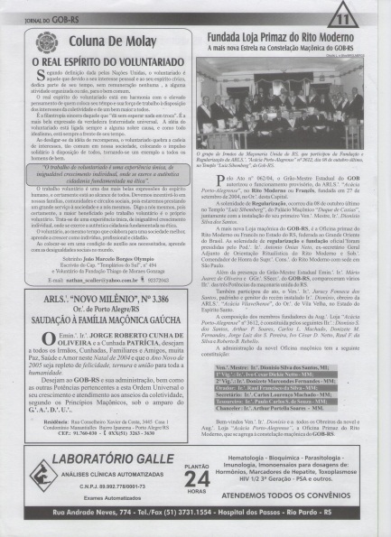 3. Já li alguns artigos sobre o rito moderno e achei muito interessante, gostaria de saber se há alguma loja deste rito em Rio Grande? (Me interesso pelo assunto mas não sou maçon).