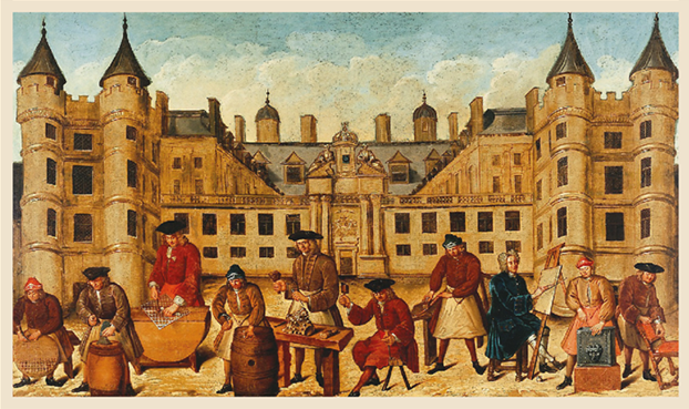 Isto ocorria por uma série de razões. Ocasionalmente, eram os mercados que incentivavam a união. Seja partilhando um local de trabalho, como o canteiro de obra, ou partilhando o acesso a materiais, com a política de acesso a fornecimentos limitados de madeira num país fortemente desmatado, a concorrência poderia constituir um argumento convincente para a incorporação. Às vezes, era moda, como acontece com os estilos arquitetônicos que exigiam tantas profissões diferentes para serem plenamente realizados. Outras vezes era a tecnologia que unia o ofício, como se vê nas ferramentas utilizadas para simbolizar determinadas corporações. Assim, o simbólico martelo coroado dos “homens de martelo” reuniu uma gama diversificada de metalúrgicos, enquanto o esquadro e compasso dos construtores funcionaram muitas vezes como um ponto focal para as profissões da construção (Figura I.1).
