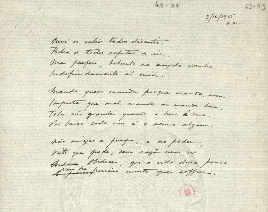[67] BNP/E3, 92A-26r. Publicado em Fernando Pessoa, Da República, op. cit., pp. 361-362. 77 Idem.