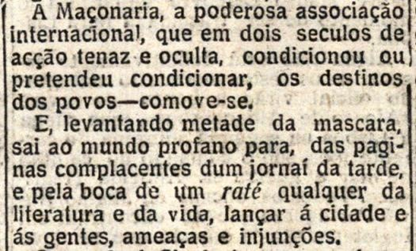 [24] “A dança das horas. Um poeta e o papão (e que papão!) maçónico”, Diário da Manhã, 5 de Fevereiro de 1935, p. 1.