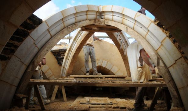 Ali tudo é feito com ferramentas e técnicas medievais, desde o içamento