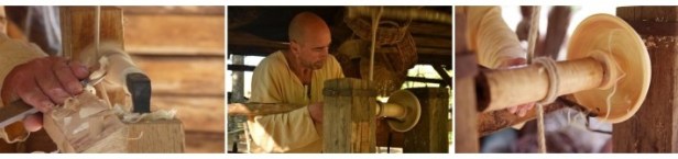 E ferramentas e utensílios de madeira feitos em tornos antigos