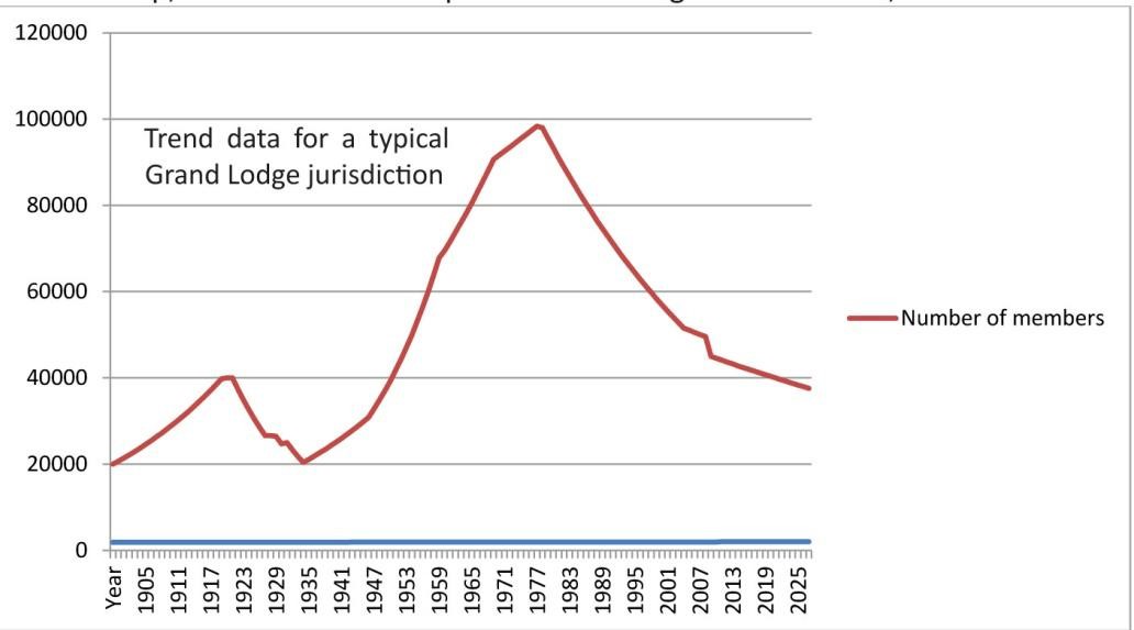 Essa visão expandida levou a duas interpretações diferentes. Uma interpretação é que esse fenômeno de aumento e queda de membros é natural e que há pouco que se possa fazer a respeito, exceto esperar. Existe claramente uma relação entre grandes guerras e o número de membros maçons, mas essa relação não é bem compreendida para se controlar os resultados. Aqueles que assumem essa posição acreditam que não temos controle real sobre a situação e que certamente não queremos destruir a Maçonaria engajando em uma reação radical e instintiva. Eu chamo a esses de “Status-Quos” e falarei mais sobre eles depois.