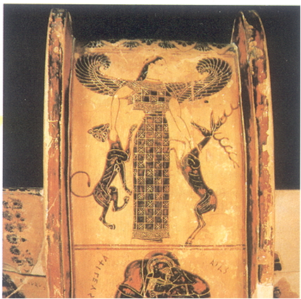 Quando todas as almas escolheram suas vidas, elas se apresentaram a Lachesis. E ela enviou com cada uma, como guardião de sua vida e realizador de sua escolha, o Daimon que ela havia escolhido, e esta divindade levou a alma primeiro a Cloto, sob sua mão e seu giro do fuso para ratificar o destino de sua sorte e escolha, e após o contato com ela, o daimon novamente levou a alma à fiação de Átropos para tornar a teia de seu destino irreversível, e então, sem olhar para trás, passou sob o trono da Necessidade. (citado em Hillman, 1996, p. x)
