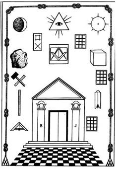 Nota: não mencionaremos aqui a prancha de traçar, representada no quadro da loja na forma de um retângulo no qual aparecem duas grades do alfabeto maçônico. É nessa prancha de traço que os mestres elaboram seus planos.