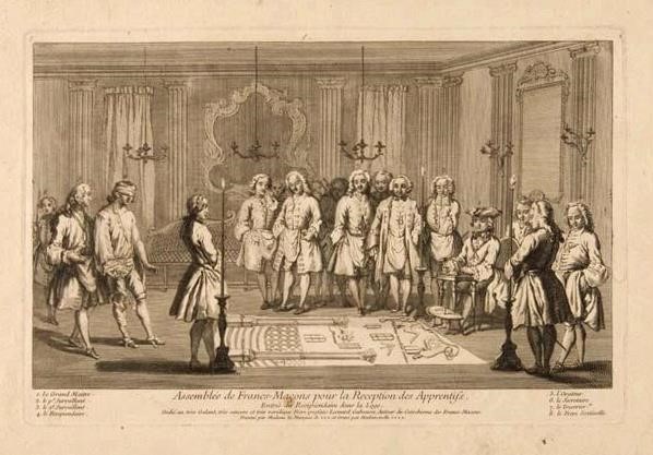 - Em 1744 o “Catéchisme des franc-maçons “ de Leonard Gabanon (pseudónimo de Louis Travenol) para além de incluir reproduções de um “Plano da Loja para a recepção de um Aprendiz-Companheiro” e, de um “Plano de Loja para a recepção de um Mestre” apresenta uma série de gravuras, que ilustram a realização das cerimónias de iniciação e, de exaltação, confirmando a descrição de Herault.