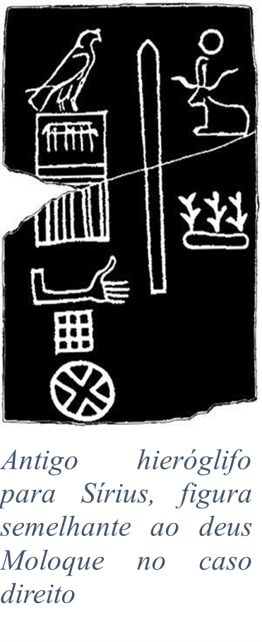 | Deus-estrela Moloque (Sírius) | Deus-estrela venerado pelos hebreus e outros povos antigos como sumérios, babilônicos e egípcios. Este deus-estrela era uma referência à Sirius, estrela mais brilhante do céu e de cinco pontas. | Salomão teria edificado um altar a Moloque por influência feminina, encontrando-se dividido. |