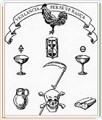 Assim, era entre a dicotomia configurada pelo ternário de símbolos de esperança, protagonizado pelo Pão, pela Água e, pela Luz, e o ternário de símbolos de desolação, materializado pelo Sal, pelo Enxofre e, pelo Crânio, que o recipiendário deveria escolher, amparado pela mensagem “VIGILANCIA E PERSEVERANÇA”, que acompanhava o Galo e a Ampulheta desenhados na parede, e com a promessa também aí presente numa inscrição, de que “Tu sairás do abismo das Trevas, e tu verás a Luz”.