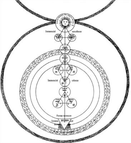 Ademais, para a melhor compreensão do martinezismo, importa não perder de vista o ambiente no qual MP, um mago, um teurgo, estava imerso quando escreveu o TRS: a efervescência intelectual que em meio aos acalorados debates que não raro degeneravam em embates e que mesmo na Modernidade já avançada (Iluminismo) ainda dividia os corações e as mentes ao opor 2 (dois) sistemas de mundo: 1) o ptolomaico – defendido pela igreja católica -, concebido a partir de esferas concêntricas e harmônicas – tendo a Terra e o Homem no centro – e sobre as quais se distribuíam as estrelas (fixas) e orbitavam (em ciclos regulares) os 7 (sete) planetas[19] (sol, mercúrio, vênus, marte, júpiter, saturno e lua) vistos a olho nu; e, 2) o copernicano, também denominado de sistema heliocêntrico, à época revolucionário, marca da emergência de um novo paradigma. Claramente posicionado, não é por mero acaso que a representação do Quadro Natural (Pasqually, op. cit., p. 306) é uma sucessão de círculos concêntricos – com Deus ou a sua centelha ao centro – e tampouco que nele constem os “planetas” recém listados.