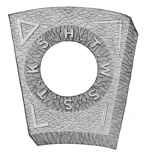 A Pedra Angular possui oito letras gravadas; HTWSSTKS, que significa ‘Hiram, o Filho da Viúva Enviado ao Rei Salomão’.