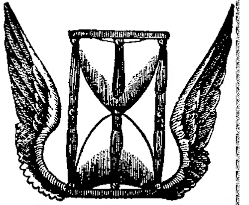 A ampulheta indica que o tempo está avançando, e nada pode reverter o movimento da areia.