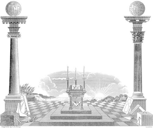 Esses dois pilares são construídos na entrada das lojas maçônicas. Na Bíblia, dois pilares conhecidos como Boaz e Jachin estavam no pórtico do Templo de Salomão.