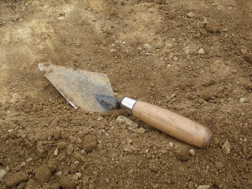 Pedreiros usam colheres durante a construção para espalhar cimento em tijolos ou pedras.