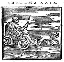 Emblema XXIX: Os dois leões que puxam o carro evocam duas fases da Opus Magnum traduzidas no “Leão Verde” (vitríolo) e no “Leão Vermelho” (enxofre). Escreve Basílio Valentino em As doze chaves: “tu então nutriste e dissolveste o verdadeiro Leão com o sangue do Leão Verde. Pois o sangue fixo do Leão Vermelho foi feito do sangue volátil do Leão Verde; portanto, eles são de uma mesma natureza, e o sangue não fixado torna novamente fixo aquilo que é volátil, e o sangue fixo, por sua vez, fixa aquilo que é volátil”.O motto se adequa bem à interpretação alquímica: “Até os mais ferozes são domados”.